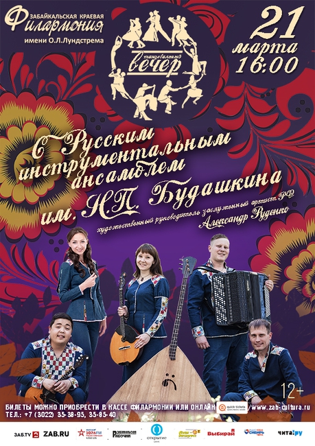 21 марта в 16.00 Забайкальская краевая филармония приглашает всех на «Танцевальный вечер» с РИА им. Н.П. Будашкина, посвящённый 75-летию Победы в Великой Отечественной Войне.