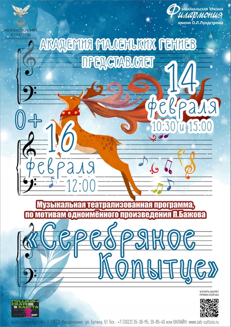 14 февраля 15:00 на сцене органного зала филармонии пройдет музыкальная театрализованная программа «Серебряное копытце».