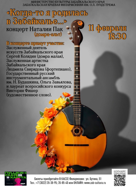 11 февраля в 18:30 в Забайкальской краевой филармонии состоится творческий вечер артистки Наталии Пак.