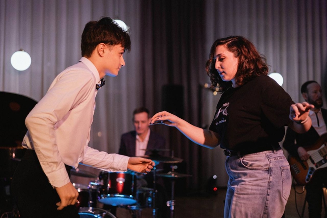 Тёплый свет свечей создавал уютную, почти домашнюю обстановку, в которой хотелось слушать, молчать и улыбаться. А когда к музыке присоединился шоу-балет «Клюква», зал окончательно ожил: зрители танцевали прямо в ритме джаза, в мерцании огоньков, заведенные искрами, которые летели со сцены.