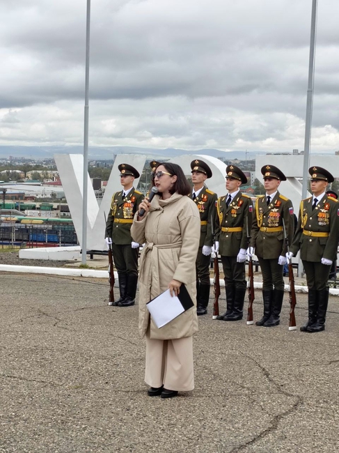 Артисты Забайкальской краевой филармонии ведущая Виктория Фишер и солистка Анна Алферова приняли участии в торжественной церемонии полуденного выстрела в честь присвоения городу Чите почетного звания «Город трудовой доблести».