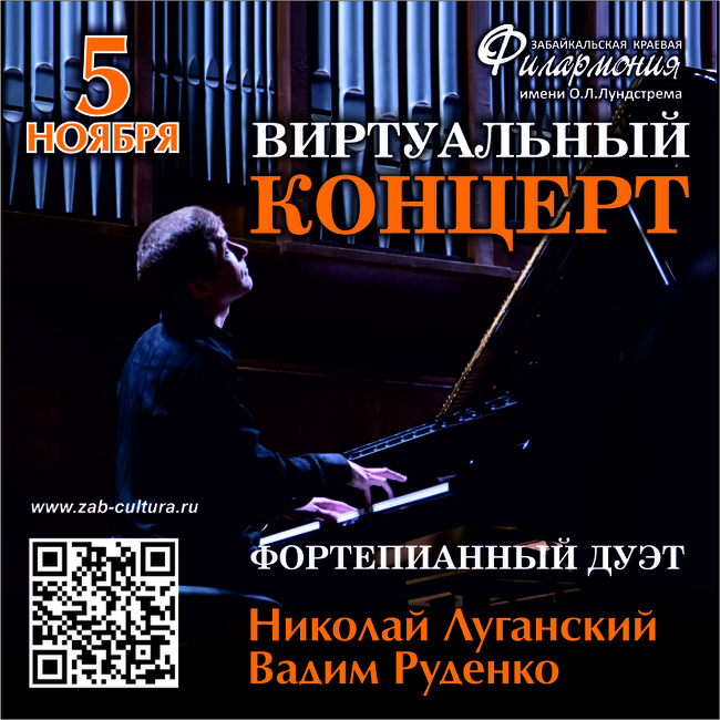 Сегодня в виртуальном концертном зале Забайкальской краевой филармонии вы можете посмотреть концерт «Фортепианные дуэты» Николая Луганского и Вадима Руденко.