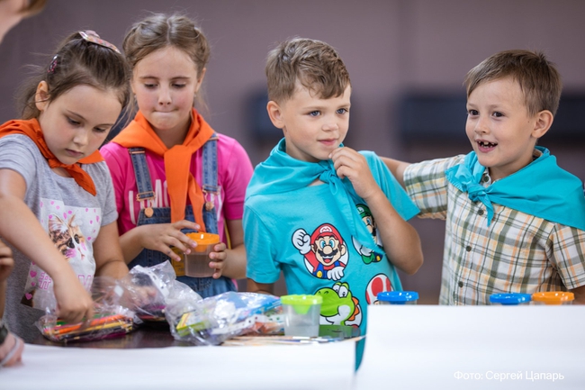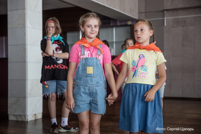 Смена «Яркое лето» началась со знакомства с вожатыми, в роли которых ежегодно выступают артисты филармонии. Друг с другом дети познакомились во время игр. Они научились оригинальным способам приветствия, придумали эмблему и речевку лагеря, весело провели время на свежем воздухе на закрытой территории лофт-площадке филармонии. Весь первый день смены был посвящен сплочению коллектива. И, действительно, дети быстро подружились. Ярким событием первого дня в лагере стало знакомство с инструментами в Музыкальной мастерской Академии маленьких гениев. Дети погрузились в сказочную атмосферу и узнали интересные истории о флейте, баяне, домре и бас-гитаре.