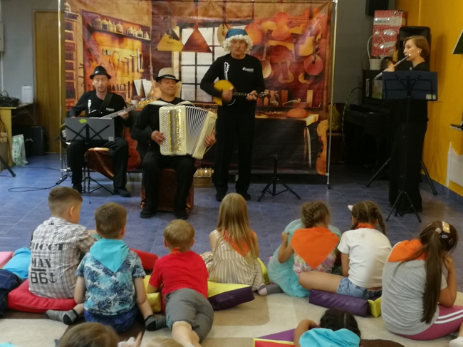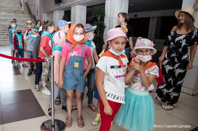 Лагерь «Филармоника» открыл свои двери для юных читинцев! С самого утра у входа в Забайкальскую краевую филармонию детей встречали и заряжали их хорошим настроением веселые персонажи – Виолончель и Барабан, тролль – Цветан и Рэд из Энегри бердс.