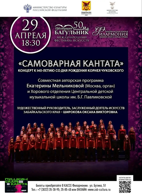 «Самоварная кантата» – это авторский проект, рожденный в сотрудничестве столичной гостьи и юных читинских музыкантов. Произведение было специально написано к 140-летию «дедушки Корнея» и впервые прозвучит в Чите именно в рамках краевого фестиваля. Это не просто концерт, а настоящий музыкальный спектакль, где орган перестает быть строгим и становится участником веселого чаепития.