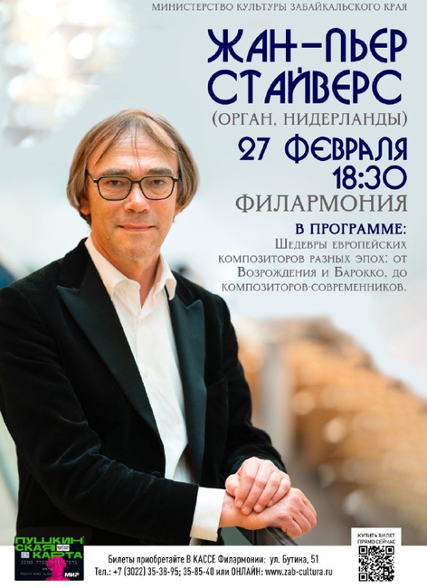 Забайкальская филармония приглашает на концерт органиста-виртуоза Жана-Пьера Стайверса из Королевства Нидерландов.