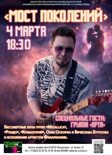 Забайкальская филармония запускает новый масштабный проект «Мост поколений». Его главная идея — не просто представить публике всё богатство музыкальной палитры от джаза и рока до народной и академической музыки, но и совершить важный шаг в преемственности. Основная задача — вывести на одну сцену подрастающих талантливых музыкантов и признанных мастеров, показав, что именно музыка, как универсальный язык, воспитывает целые поколения. Это диалог, где опыт встречается с юной энергией, а традиции — со смелыми поисками.