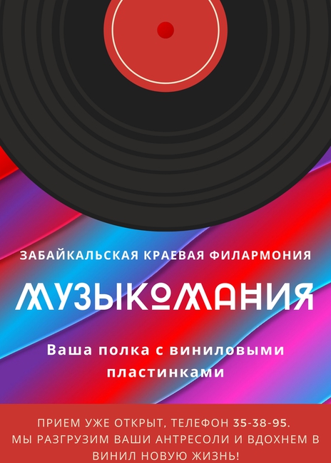 Забайкальская краевая филармония в 2021 году открывает точку притяжения для читинцев и гостей столицы. «Музыкомания» - это доступная для вас полка с виниловыми пластинками, которая позволит послушать много новой музыки.